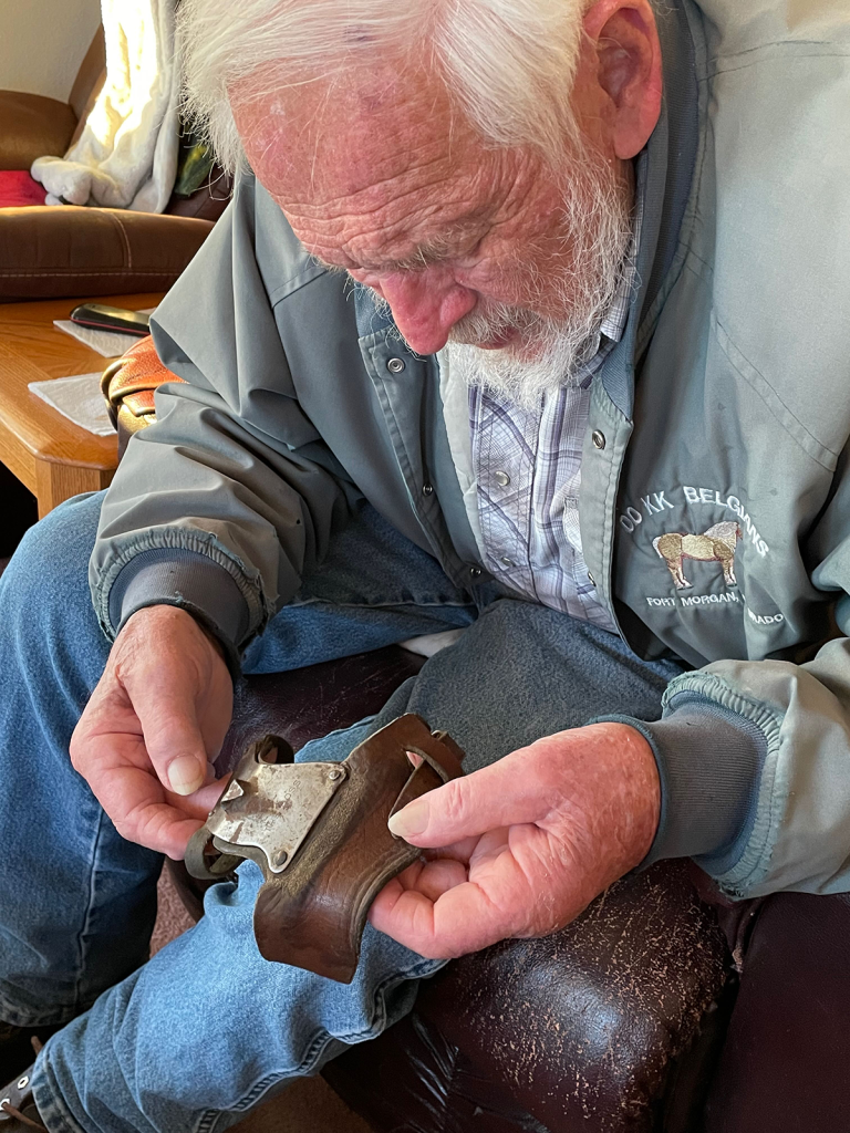 Husking gloves (more straps than glove) were used to pop the ear from the stalk. After separated from the stalk, the ear was tossed against the bang board so that it dropped into the wagon bed.