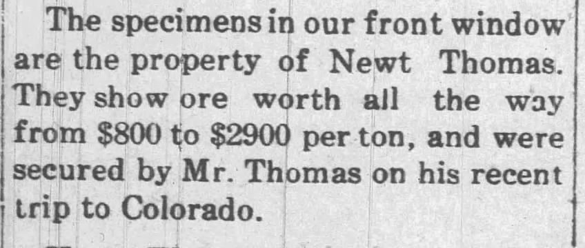 In addition to the red sandstone quarries that made Lyons famous, there were scores of gold, silver, tellurium, and coal mines in Boulder County. Did Newt engage in prospecting? Or was he just bringing back objects he knew people would find interesting?